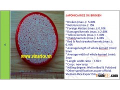 | Type: | Rice | | Texture: | Soft | | Kind: | Calrose Rice | | Variety: | Japonica rice | | Style: | Fresh | | Cultivation Type: | Common | | Color: | White | | Broken Ratio (%): | 5 % | | Max. Moisture (%): | 14 % | | Admixture (%): | 0.5 % | | Crop Year: | New Crop in 2014 | | Certification: | SGS, FCC, Vinacontrol, HEALTH AND WEIGHT CERTIFICATE | | Place of Origin: | Ho Chi Minh City Vietnam | | Brand Name: | SONA | | Model Number: | JP2014 | | GOOD QUALITY: | APPROVED BY ORGAN | Japonica Rice